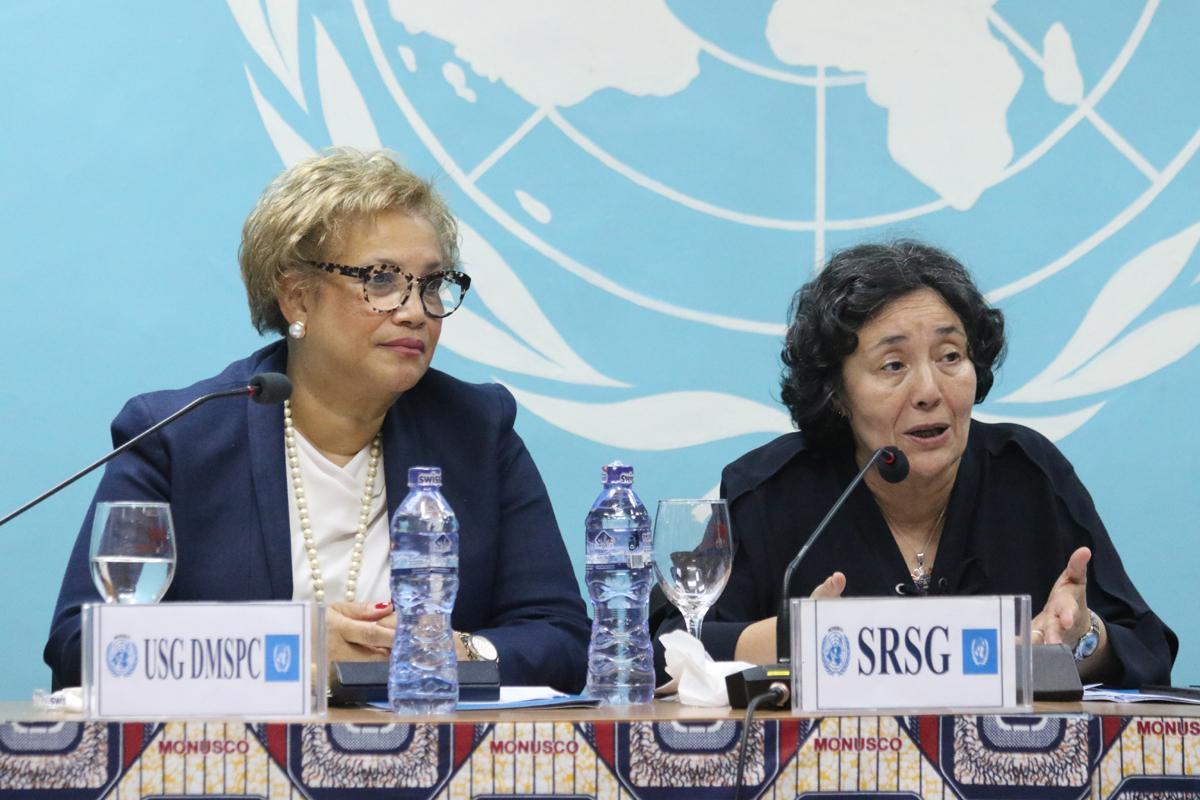United Nations Under-Secretary-General Catherine Pollard and Head of MONUSCO Leila Zerrougui, speaking with staff of the UN Mission in Kinshasa. Photo MONUSCO / John Bompengo United Nations Under-Secretary-General for…