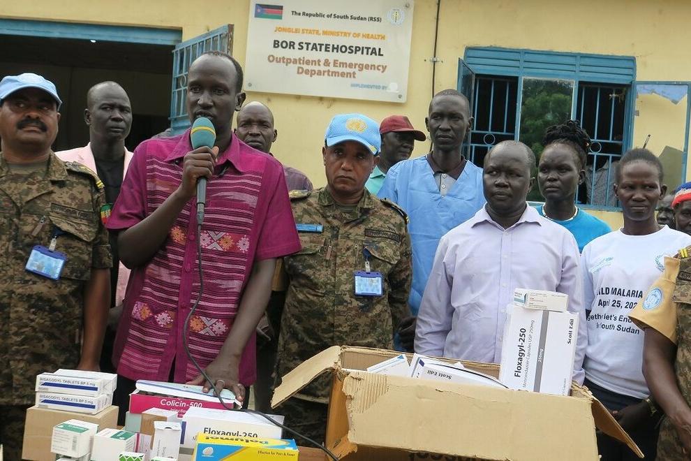 There are many ways to protect civilians, says Lieutenant-Colonel Desalegn Gulilat, commanding officer of UNMISS peacekeepers from Ethiopia. An example: he and his troops handed over essential medicines to Bor State Hospital, which, according to hospital authorities, will make a real difference,,,