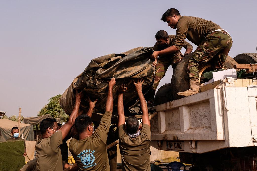 Spanish peacekeepers handed over a number of sports gear and school supplies to the village of El Adaysseh on 20 February 2022. (UN Photo / Corporal Josue Falcon)