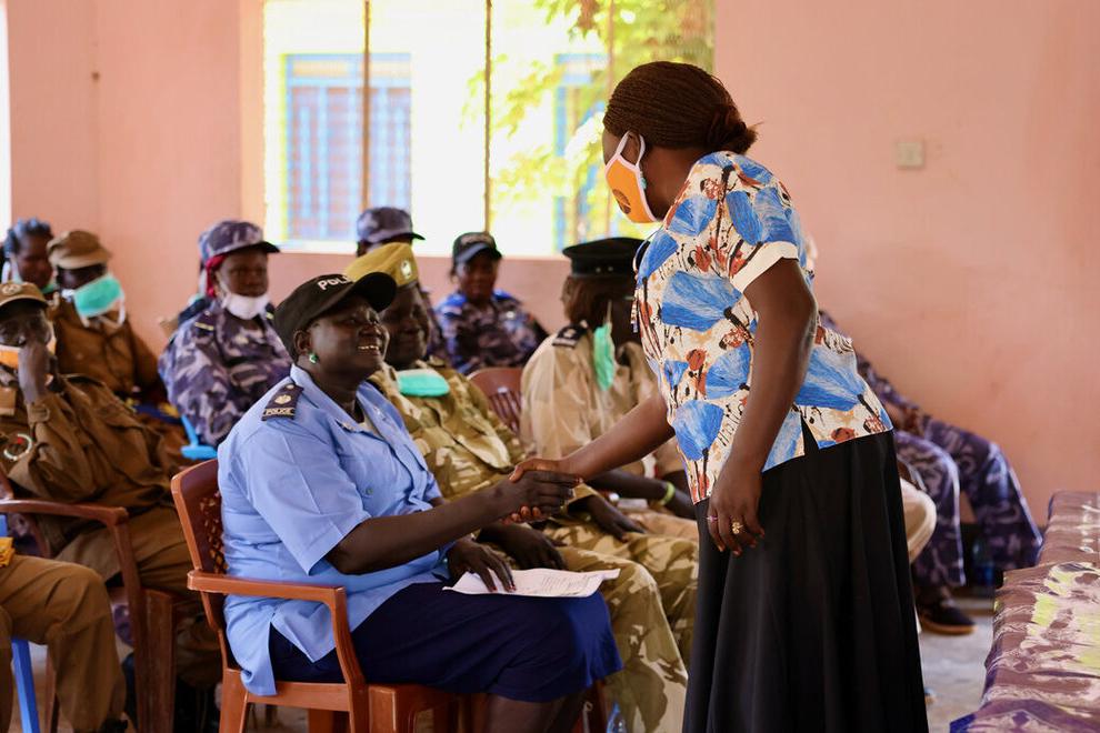 UNPOL officers serving with UNMISS in Warrap recently held a day-long workshop for female policing counterparts from the South Sudan National Police Service to build their capacities in dealing with cases of sexual- and gender-based violence. Photo by Zejin Yin/UNMISS.