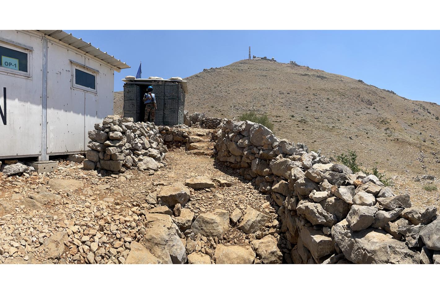 A stone fence forms the perimeter of OP1. 29 June 2021. (UN Photo / Zeina Ezzeddine)